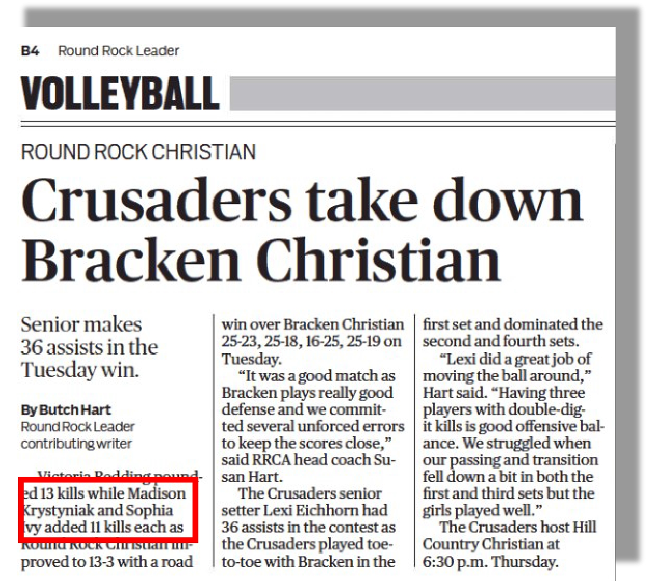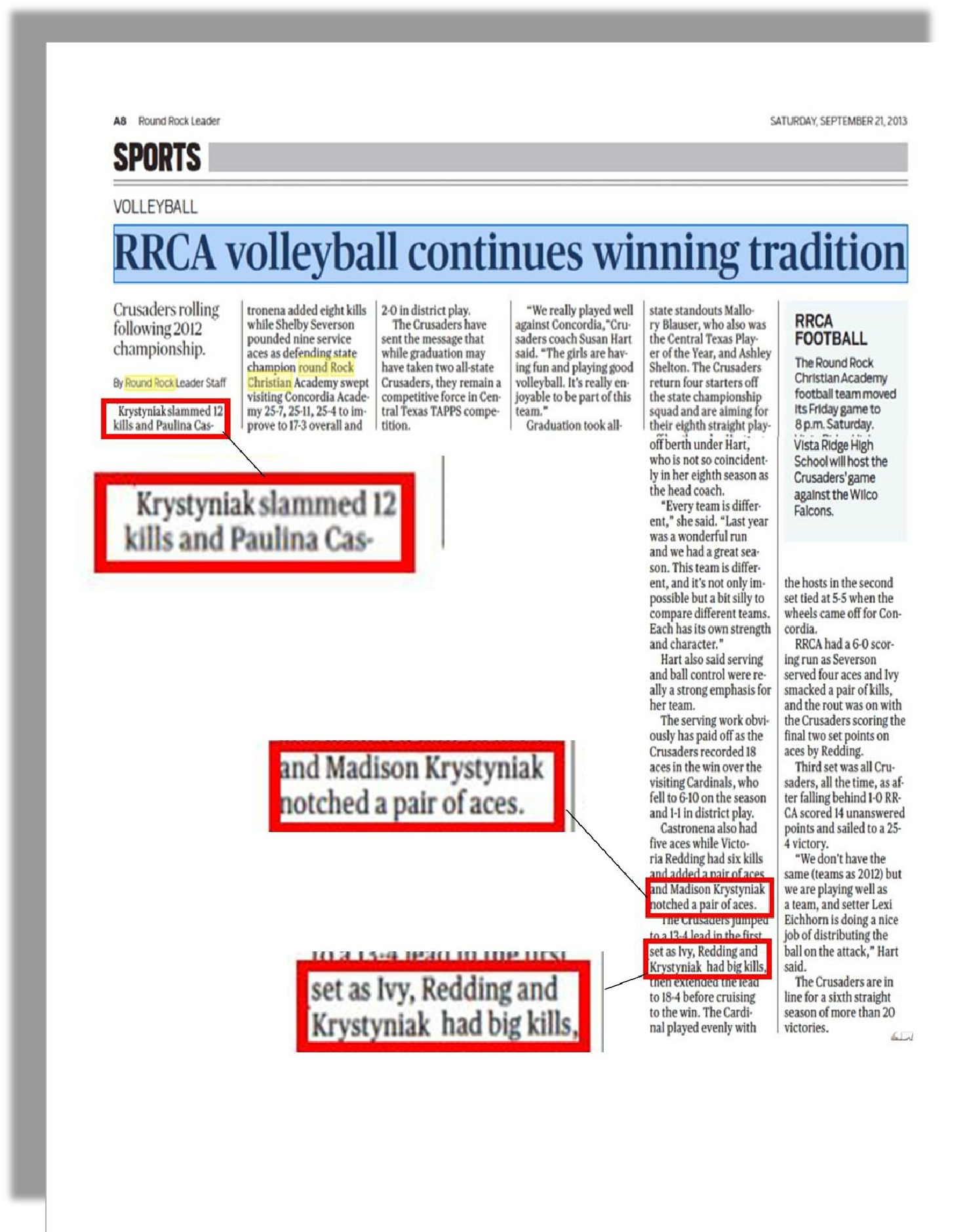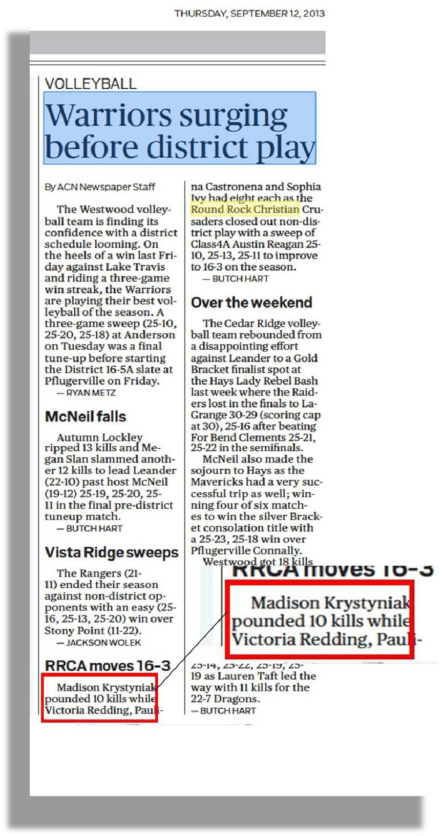 Round Rock Christian Academy Varsity Volleyball Squad, 2013-2014: OH/RS/MB;